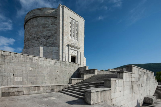 Il Sacrario Militare di Oslavia, situato tra gli abitati di Piuma e Oslavia, fu eretto nel 1938 su progetto dell'architetto Ghino Venturi di Roma, raccoglie le 57.201 salme dei Caduti italiani e i 539 Caduti austro-ungarici, tutti esumati dai cimiteri di guerra sparsi dall'Altipiano della Baisnizza al Vipacco. Sorge sulla Quota 153, situata a sinistra della rotabile che da Gorizia porta a San Floriano. Vi si accede da un'imponente gradinata in pietra fiancheggiata da un basso parapetto e da filari di cipressi.